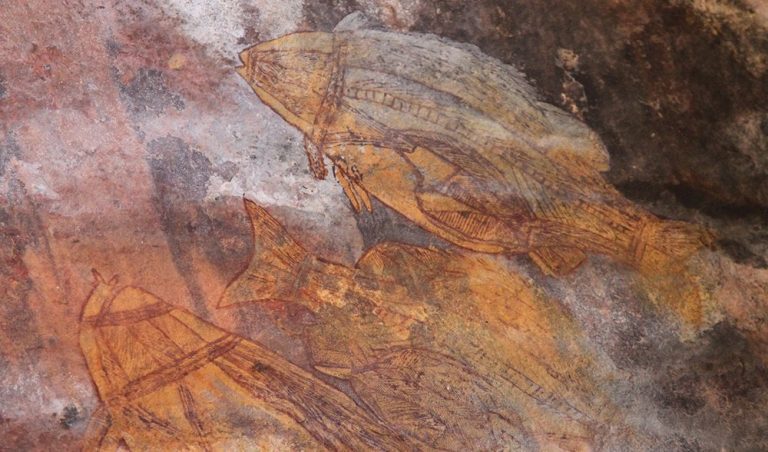 ‘Law written in cave. That painting is law. Aboriginal law never change. Old people tell us… ‘You gotta keep it.’ It always stay. Never change.’ My grandpa teach me. Grandpa say, ‘You see painting… That’s the size fish should be now. Used to be that size. Need two men to carry one catfish… Now?… Little boy can carry catfish.’