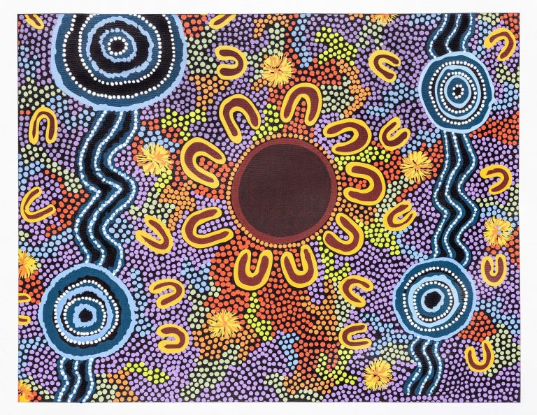 Bulurru Aboriginal Art Canvas Print Unstretched – Women Gathering At Waterholes By Merryn Apma Daley