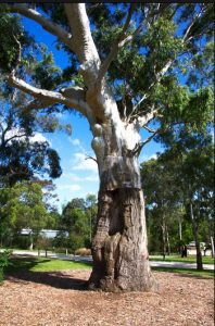 ‘A well-known marker is the scar-tree near the Heide Museum of Modern Art in Bulleen. This scar-tree is called ‘Yingabeal’ (Yinga meaning sing or song and beal being the Wurundjeri name for a redgum). Yingabeal marks the point where five different Songline routes meet and come together. Other examples of ‘signposts’ or ‘markers’ include rock formations, bends in rivers, or trees with naturally forming spirals, twists or arches.’