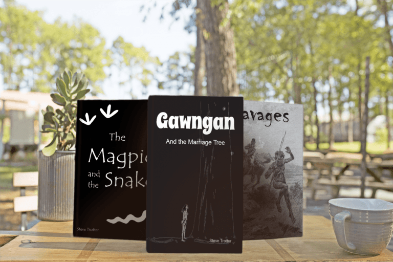 This book introduces readers to the Balagaan and Gawngan and the Nyangbal Aboriginal people. Based on a Dreamtime story, the book explores Balagaan’s determination to be with his true love even though it might mean he is breaking the lore. This story is set in Bullinaa, which means ‘place where seafood is plentiful’. Huge festivals were hosted there. Marriages were arranged, goods were traded, mock fights and a tree climbing event was held, and there was much celebrating and feasting. The book also details the Nyangbal people’s sustainable use of aqua culture, companion planting and free range animal farming that they practised for thousands of years and how all of this was threatened when the explorer Henry Rous charts their river in his ‘canoe with wings’.